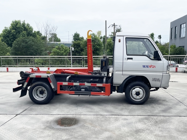 車廂可卸載式垃圾車,又稱勾臂式垃圾車、拉臂式垃圾車。該車廣泛適用與城市街道學校垃圾處理,可一車配備多個斗,各個垃圾點放置多個,帶自卸功能,液壓操作,方便傾倒。在平日里可將車載垃圾箱放置到各個垃圾收集站,待垃圾收集滿后,該車可直接開赴至垃圾站,通過液壓系統(tǒng)的操控,可將垃圾車后座上加裝的勾臂放下,掛住站內垃圾箱前端的連接點,將垃圾箱拉至車體的后座上,此時即可啟動車輛,將垃圾運送至垃圾處理站內,進行自卸式傾倒。該車主要的優(yōu)點就是可一車配多斗,一輛車就可以維持數(shù)個垃圾收集站的運轉,效率高,且箱體為密封式設計,不會造成二次污染。